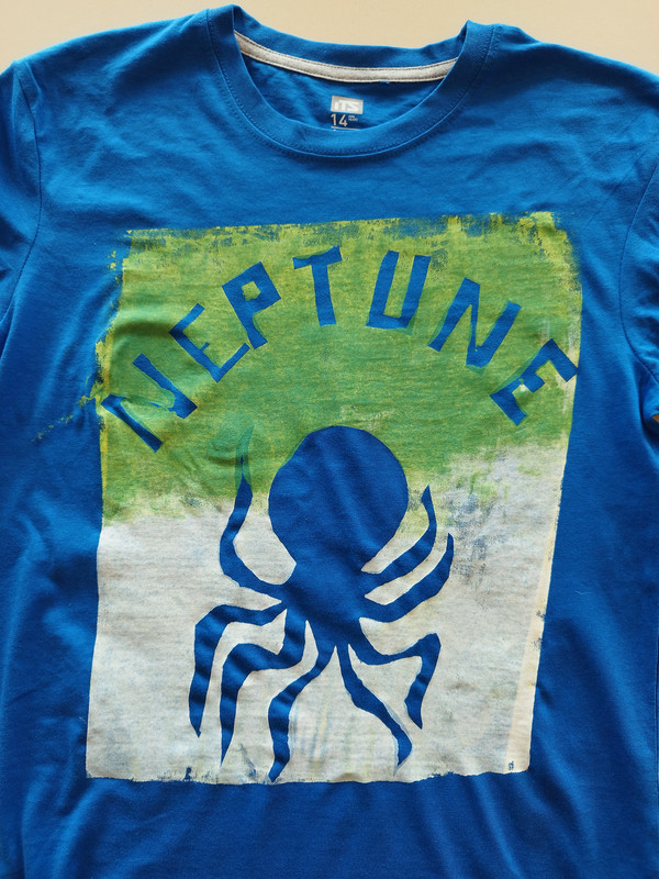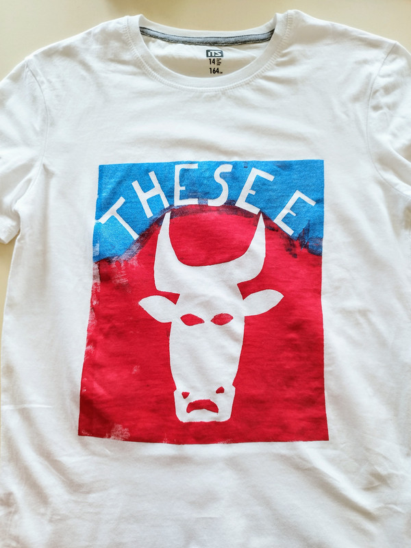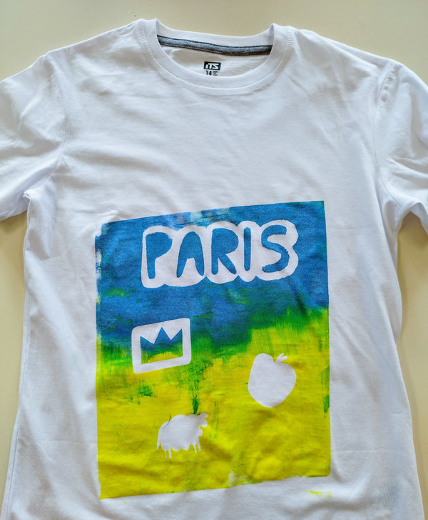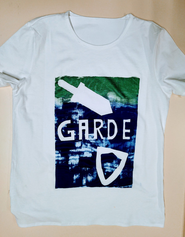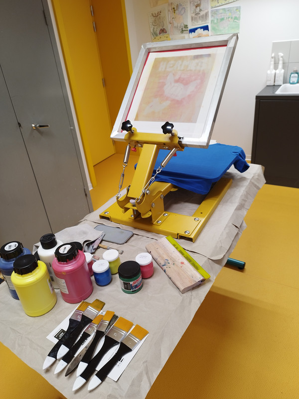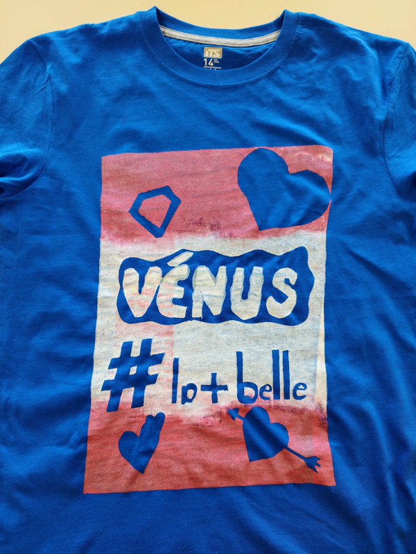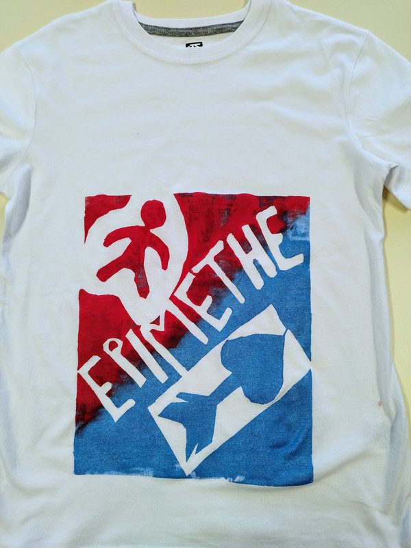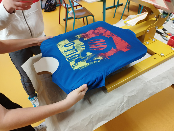 Des t-shirts sérigraphiés sur le thème de la mythologie, réalisés par des élèves de 5ème pour une pièce de théâtre.