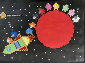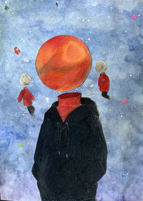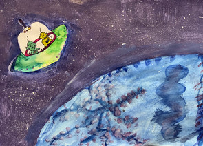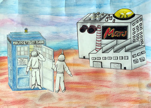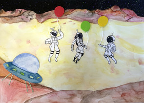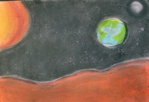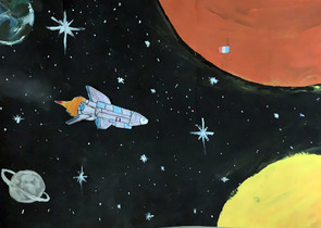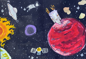 Il s’agit d’un sujet proposé par Mme MICHÈLE FRITZ, étudiante en master 1. Elle s’est engagée dans la conception de séquences pédagogiques avec une réflexion fine et pertinente. Elle a cherché à diversifier les modes de représentations dans son enseignement, en variant les approches et les techniques artistiques. Le travail consiste ici en la création d’une illustration sur une vision sur le thème d’un « Voyage pour Mars ».