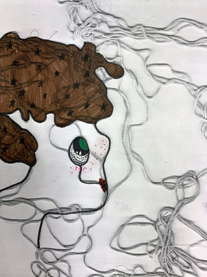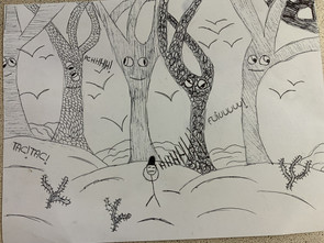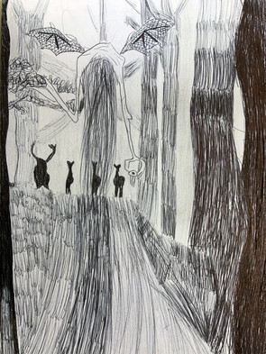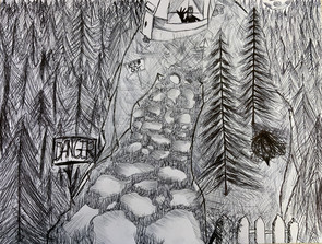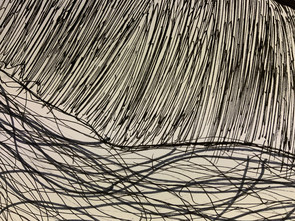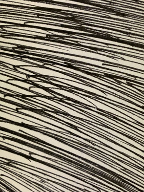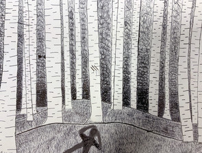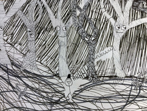 Il s’agit d’un sujet graphique avec un stylo à bille pour des élèves des cinquièmes. L’intention a été de travailler sur des représentations réelles ou imaginaires suggérant une forêt. Évoquer la densité d’une forêt avec une volonté de la représenter sombre. Un outil très intéressant qui souligne le geste graphique et qui permet de multiples variations. Il oblige donc à réfléchir davantage à ses traits, à organiser un peu plus son travail en amont, et aussi à accepter de rater.