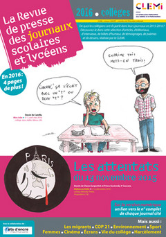La Revue de presse 2016 propose des extraits de près de 200 journaux scolaires et lycéens publiés pendant l’année scolaire 2015-2016 et reçus par le CLEMI dans le cadre du dépôt pédagogique.