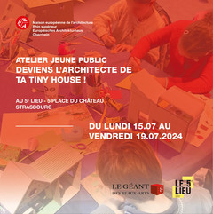 Tel de véritables architectes, les enfants âgés de 8 à 11 ans expérimenteront tout au long de la semaine les étapes d’un projet à travers la création d’une Tiny House : du premier dessin à la maquette finale. La semaine sera ponctuée d’activités de découverte : visite du 5e Lieu, séance de croquis en plein air, atelier thématique. À la fin du stage, un temps de restitution sera organisé avec les parents, suivi d'une exposition mettant en valeur les maquettes réalisées par les enfants.