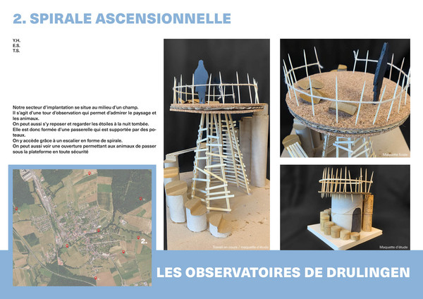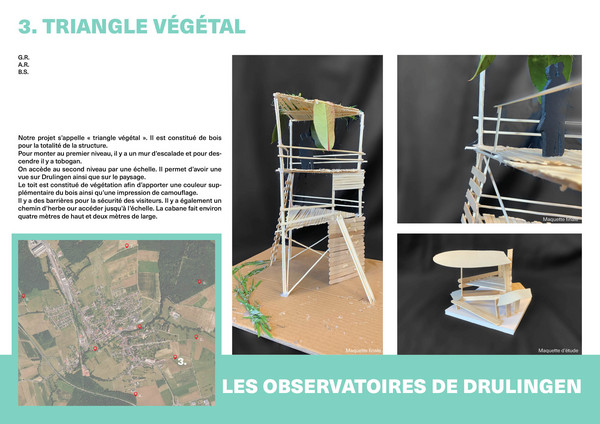 Pour la 2e année consécutive, le collectif Heruditatem est intervenu en cours d'Arts Plastiques. Pendant 10h, les élèves de 3eA ont réalisé des maquettes d'études, puis des maquettes finales en vue d'imaginer un festival fictif de cabanes à Drulingen. Cette intervention leur a également permis de découvrir le métier d'architecte.