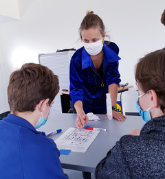 Ainsi, Sylvie Frouin, enseignante en mathématiques, a accueilli une équipe de doctorants et d'enseignants chercheurs au collège La Providence à Vendenheim : Gaelle Thomas et Paul Baksic, doctorants en robotique médicale, ont présenté leur jeu coopératif aux élèves de 4e . Ce jeu permet de comprendre les étapes de la programmation en informatique.