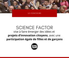 Le concours Science Factor (voir aussi page Eduscol) s'adresse aux élèves de classes de la sixième à la terminale. Les équipes candidates, de 2 à 4 jeunes, sont obligatoirement pilotées par une fille et peuvent être accompagnées par des étudiants, des enseignants ou des professionnels issus de filières scientifiques et techniques.