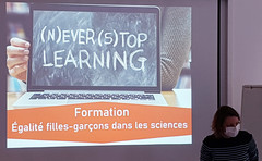 Une formation autour de l'égalité filles-garçons dans les sciences, proposée au plan académique de formation, a eu lieu mardi 14 décembre 2021 à l'amphithéâtre Alain Beretz au coeur du campus de l’Esplanade à Strasbourg. Cette formation, sous le volet "action culturelle", était animée par le Jardin des sciences de l'université de Strasbourg et la Nef des sciences de Mulhouse. Un de ses objectifs consistait à former les enseignants accueillant dans leur établissement une des expositions portant sur ce thème.
