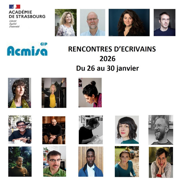 L'Académie de Strasbourg, avec le soutien financier du GIP-Acmisa, organise du 26 au 30 janvier 2026 des Rencontres d'écrivains. Ce temps fort dédié aux livres est emblématique des actions académiques en faveur de la lecture, dont elle est une priorité. Préparées en amont par les équipes enseignantes, ces rencontres offrent aux élèves le plaisir de découvrir la littérature vivante, et de partager ce temps festif collectivement.