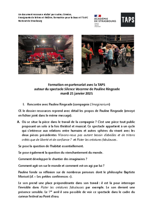 Télécharger la ressource autour du spectacle Silence vacarme de la Cie L'Imaginarium