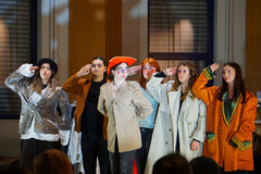 Ils ont expérimenté le registre burlesque pour raconter la Révolution française du point de vue du peuple et à la manière de bateleurs. Ils ont fourni un important travail corporel et découvert comment jouer en étant répartis sur trois estrades différentes.