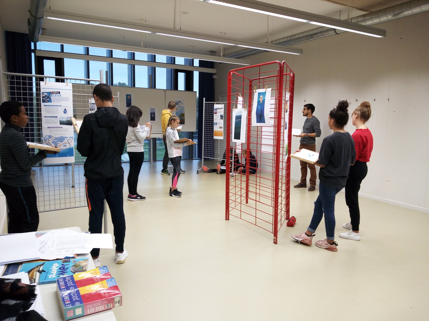 Les élèves commissaires d'exposition et médiateurs, participent activement à l'inauguration en se relayant pour assurer les visites guidées, la surveillance du local d'exposition, la présentation au public des outils pédagogiques qu'ils ont imaginés à destination des élèves de CM1-CM2 des écoles primaires du secteur.
