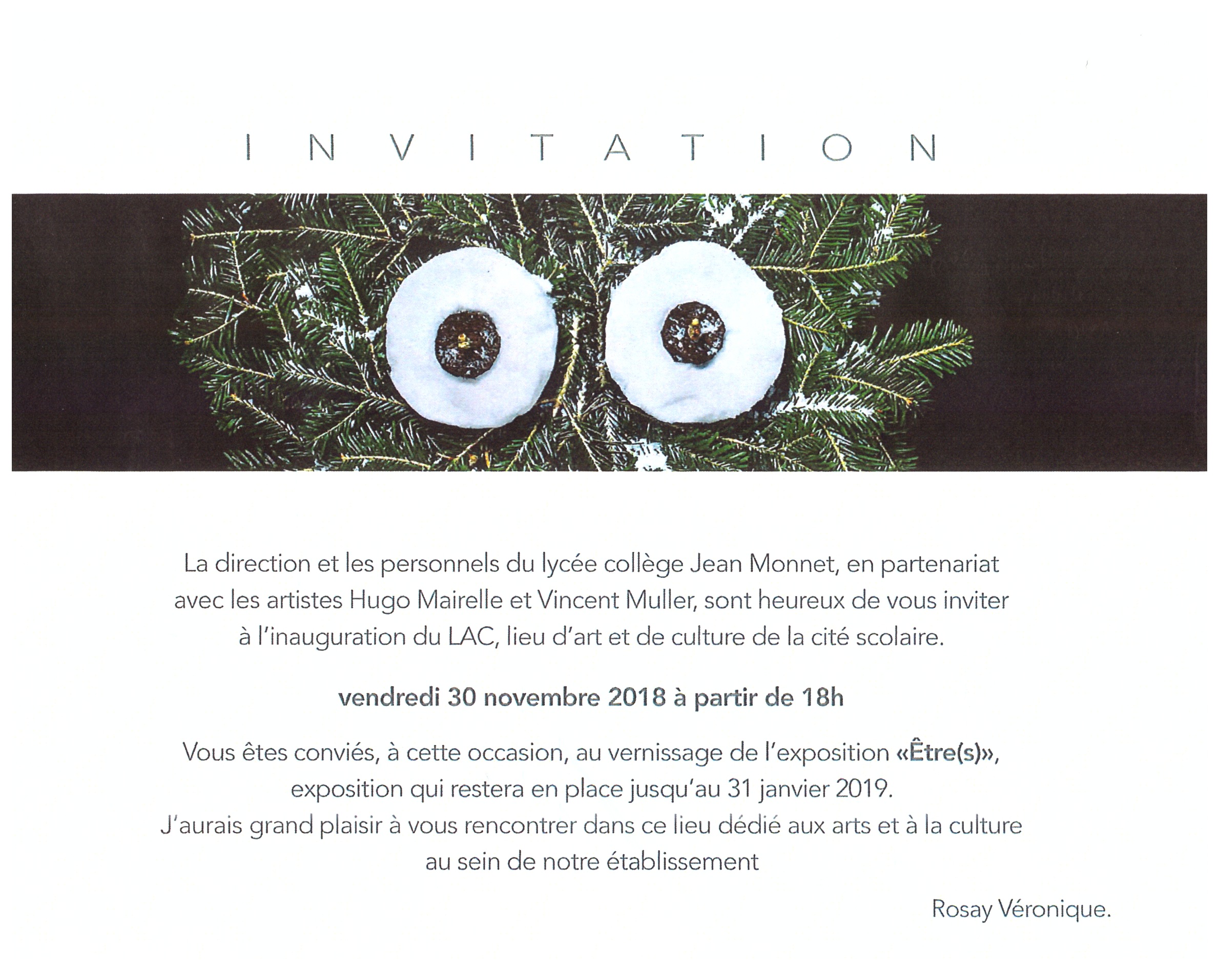 Année scolaire 2018-2019 _ Carton d'invitation travaux d'atelier 2018-2019