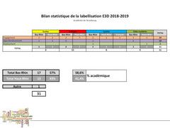 A l'issue de la campagne de labellisation E3D 2018/2019, 31 écoles et établissements scolaires (dont 3 déjà labellisés obitiennent un niveau supérieur) vont obtenir à la rentrée scolaire 2019 le label E3D, rejoingnant ainsi les 61 écoles|établissements déjà labellisés.