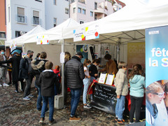 Comment le son, cette vibration, peut-elle se déplacer dans un tuyau d’arrosage, le long d’un « fil qui chante » ou bien modifier la hauteur d’une note dans un verre d’eau ? C’est par ces questions que Nathalie Mathern, professeur de Mathématiques, a rendu la science plus attrayante au jeune public qui s’est pressé sur le stand.