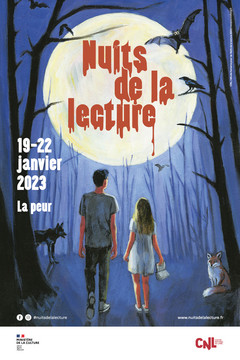 Les prochaines Nuits de la lecture, organisées pour la deuxième année consécutive par le Centre national du livre sur proposition du ministère de la Culture, se tiendront du 19 au 22 janvier 2023 au cours de quatre soirées, avec un temps fort le samedi 21 janvier. Le public sera invité à se réunir à l’occasion de milliers d’événements physiques et numériques autour du thème de la peur.