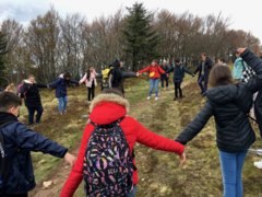 C'est en voulant mener une enquête très spéciale sur "la bête féroce des Vosges" de 1819 que les élèves partent faire une randonnée dans la réserve naturelle des hautes-chaumes du Rothenbach. Après quelques efforts, les élèves accèdent au magnifique point de vue sur la tourbière du Machais. La ballade est ponctuée d'une activité sur les chaines alimentaires et de différents jeux afin de mettre en évidence les qualités de camouflage et l'importance de la quiétude pour les grands carnivores et les animaux sauvages des Hautes-Vosges. La visite des chamois, au moment du déjeuner, est la bienvenue pour une observation à la longue-vue. La hêtraie d'altitude permet aux élèves de prendre conscience de l'adaptation des êtres vivants dans un milieu de vie extrême. C'est après toutes ces aventures que les élèves repartent dans leur établissement la tête encore un peu dans les nuages du Rothenbach.