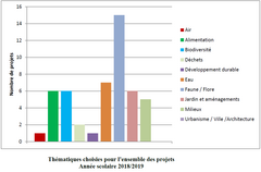- 49 projets soutenus (pour 60 projets déposés) : 9 projets de maternelle, 28 projets d'école élémentaire, 10 projets de collège et 2 projets de lycée ;