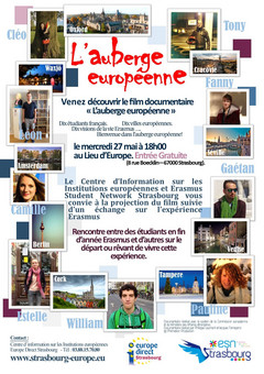 "L’auberge européenne" est un documentaire qui sera projeté le mercredi 27 mai à 18h00 au Lieu d’Europe et qui sera suivi d'une rencontre entre des étudiants en fin d’année Erasmus et d’autres sur le départ ou rêvant de vivre cette expérience. Entrée Gratuite!