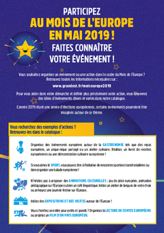Vous souhaitez vous associer au Mois de l’Europe 2019 en organisant un événement ou une action dans ce cadre?