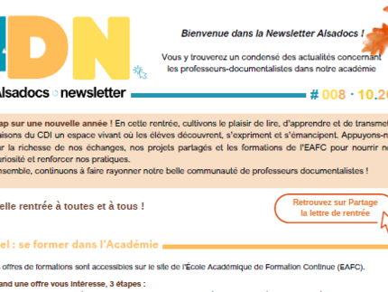 Huitième numéro de notre newsletter à l'attention des professeurs-documentalistes de l'académie de Strasbourg.