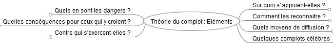 Les élèves devaient analyser deux articles autour des attentats de Charlie Hebdo, grâce à un article du JDE du (jeudi 9/03 au mercredi 15/03 2017, numéro 1583) présentant les grandes lignes des théories du complot. Les élèves avaient ensuite une carte plus élaborée à construire à partir de ressources disponibles mises à disposition sur Moodle. Le titre de la carte, ainsi que la 1ère couronne de sujet-enfants étaient donnés, pour faciliter le travail. Matériel : Moodle. Évaluation : L'évaluation porte sur les deux cartes et l'analyse des articles. Compétences : Domaine du socle commun :