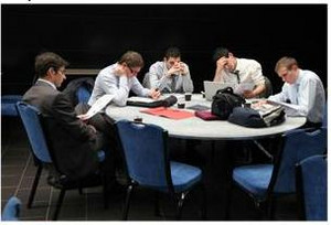 - L'étude d’un cas pratique puis présentation au jury, par les 4 équipes retenues (les 6 autres équipes participant à une épreuve de négociation pour le prix de la petite finale).