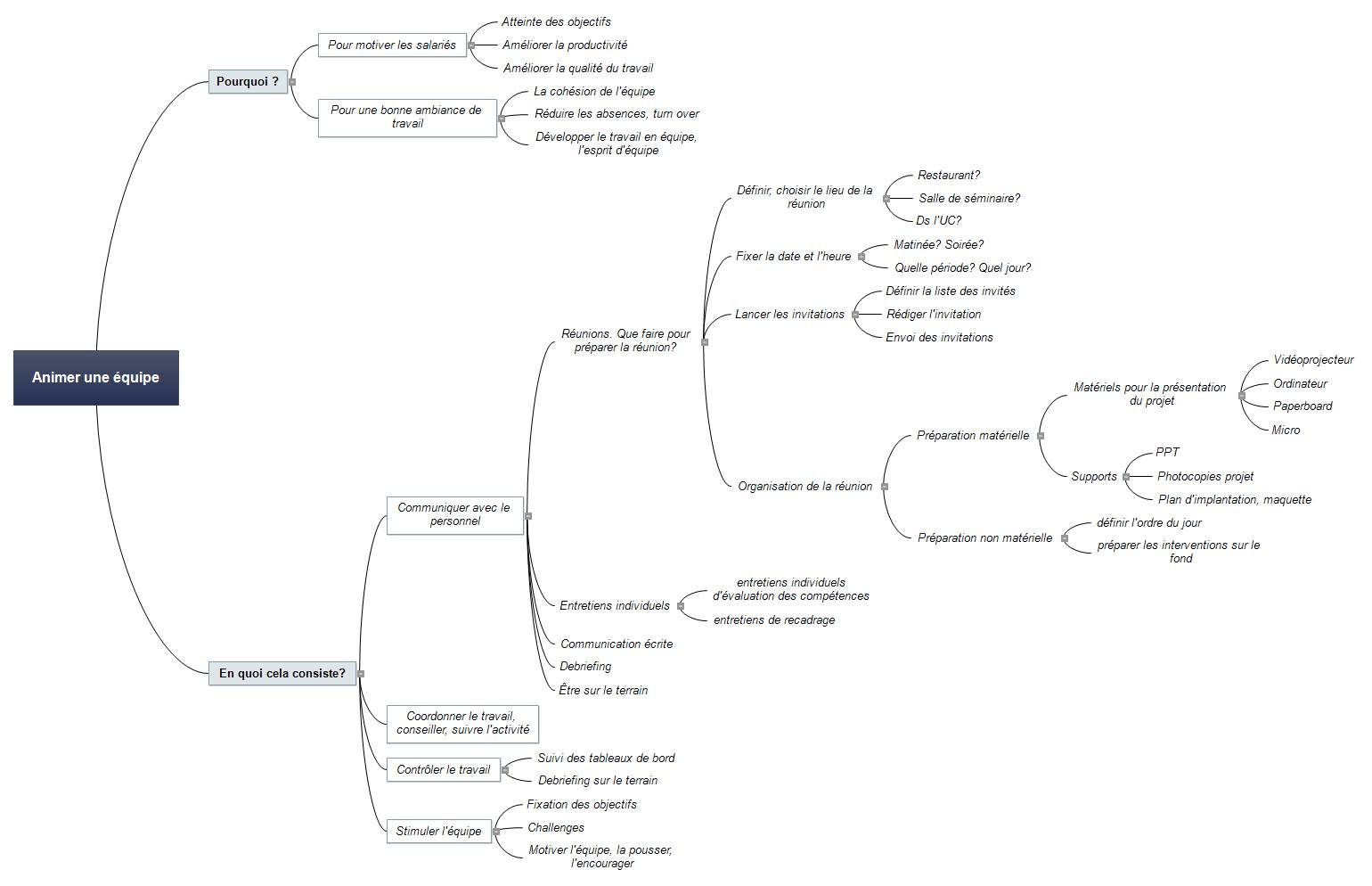 Apports pour les étudiants | - La création de l’arborescence aide l’étudiant à définir l’étendue et le contenu possible de son projet de la façon la plus complète possible, quitte à exclure ensuite certaines activités jugées non pertinentes ou non prioritaires. - L’arborescence oblige les étudiants à bien structurer le contenu de leur projet en distinguant les étapes, les activités et les tâches - Lors de la soutenance orale, le Mind Map aide l’étudiant à valoriser le contenu de son projet auprès du jury |