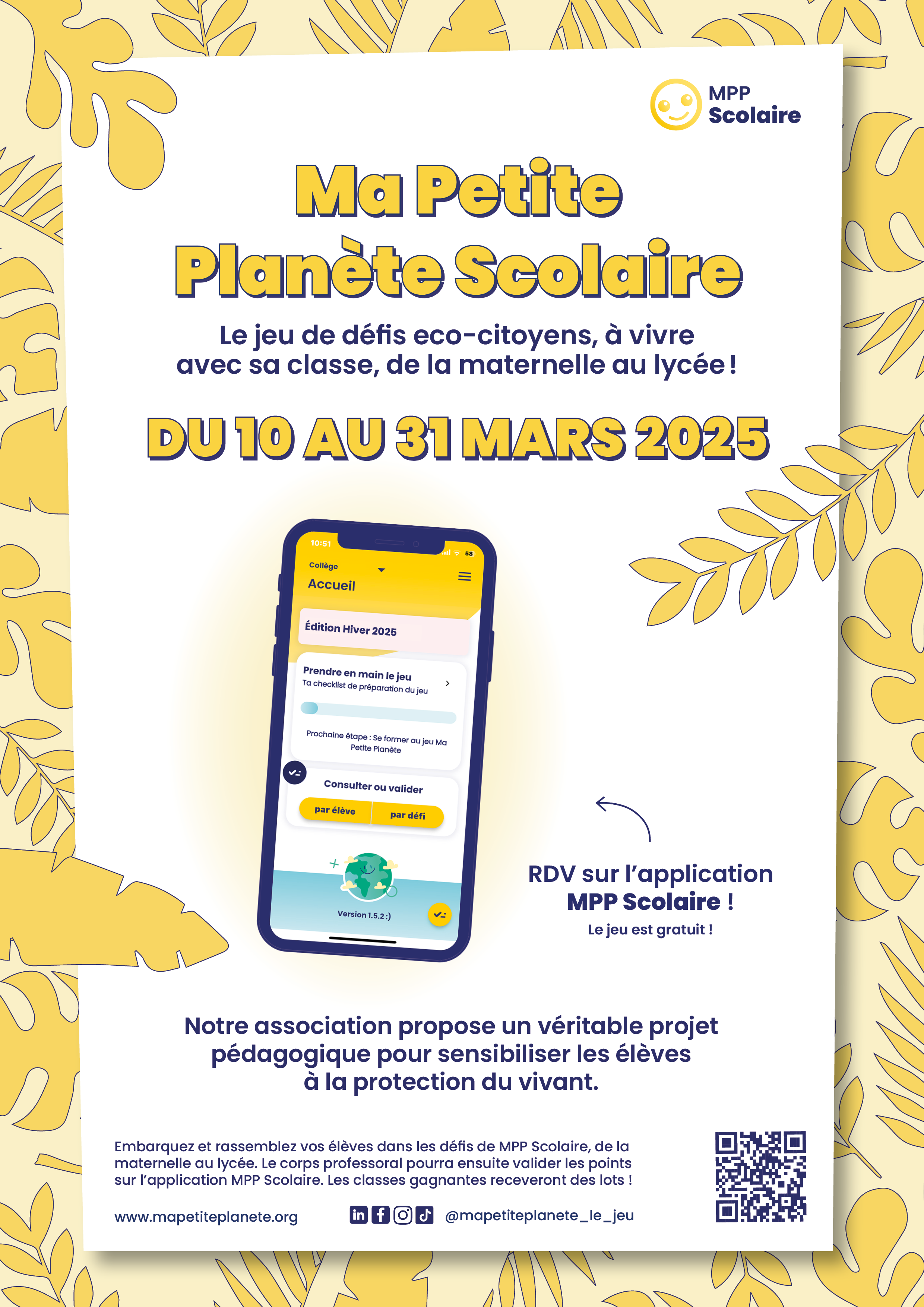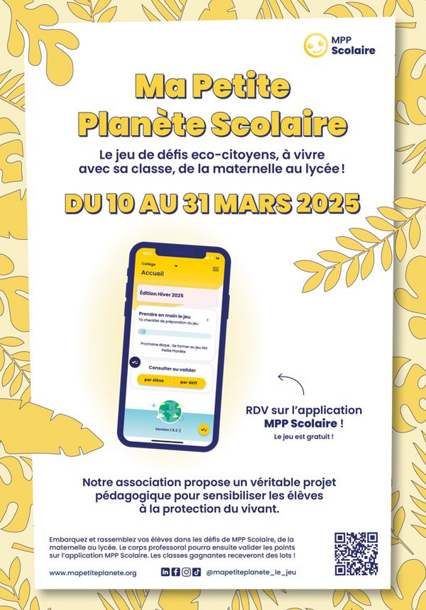 Pour s’inscrire il suffit de télécharger l’application MPP scolaire. Si vous voulez en savoir plus, vous pouvez assister à l'un de leurs Webinaires de présentation. La prochaine édition scolaire se déroulera du 17 novembre 2025 au 8 décembre 2025..** Rejoignez des milliers de classes partout en France pour une aventure collective ludique et motivante !