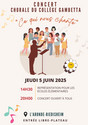 Concerts de fin d'année scolaire de 2025 le 10 juin vers 18h30 devant les parents d'élèves et devant les collègues du collège.