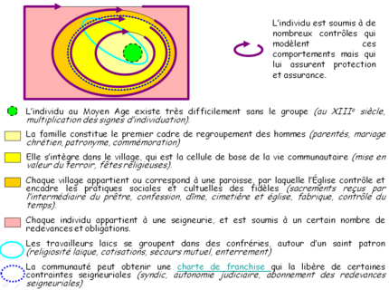 Pour éviter toute forme de cloisonnement dans l’étude de cette thématique, on propose de partir d’une réflexion plutôt globale et notionnelle en s’appuyant sur une analyse multiscalaire des phénomènes. En effet, quelques soient les cadres (au sens large), ils sont tous toujours en interaction dans les différents espaces de l’Occident chrétien, et emboîtés les uns dans les autres.