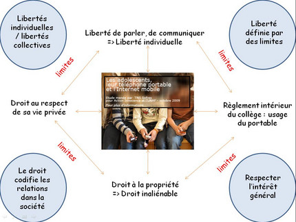 Cette étude de cas a été également pensée pour permettre d’établir un lien avec l’éducation civique et notamment la thématique 1 sur l’exercice des libertés en France, en partant de l’usage du téléphone portable par les élèves dans leurs collèges. Il s’agit ici de mettre en lien les idées de liberté, de droit et de règle.
