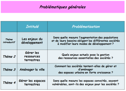 Ils proposent une programmation annuelle, ainsi qu’une problématisation par questions accompagnées de pistes pour le choix de l’étude de cas et les axes de la mise en perspective.