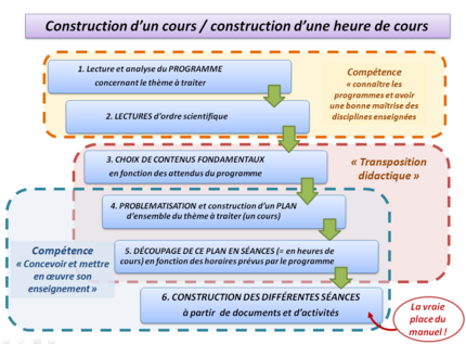 Ils mettent d’ailleurs à la libre disposition des nouveaux collègues une fiche qui peut les aider à préparer une séance. Elle synthétise les principales questions qu’ils doivent se poser et elle permet d’associer les grandes notions du cours, les principales connaissances et la démarche qui sera mise en œuvre.