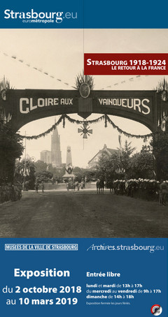 Dans le cadre du centenaire de la fin de la Première Guerre mondiale, les Archives de la Ville et de l’Eurométropole, le Musée historique et le Musée Tomi Ungerer – Centre international de l’Illustration se sont associés pour présenter au public, en 150 documents et objets, l’histoire complexe de ce changement d’époque et de nation, à Strasbourg, entre 1918 et 1924.