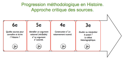 En outre, il s'agit de réfléchir à la méthode de construction du savoir historique, en partant de la question de la documentation et de sa vérification, jusqu'au débat historiographique préparant l'entrée des élèves au lycée et dans leur vie d'adulte.