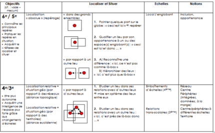 4. Situer: Une capacité pour penser l’espace | Une proposition de progression portant sur la capacité « localiser » construite au fur et à mesure de la 6e à la 3e. Elle met en évidence l’importance de cette capacité pour aider les élèves à appréhender concrètement les relations entre les espaces et les articulations entre les échelles. Bref, une capacité au cœur de la géographie ! |