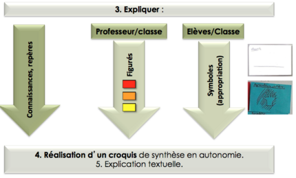 Défini comme « une représentation cartographique simplifiée qui rend compte de l’organisation et des dynamiques d’un espace », le croquis est une tâche complexe qui nécessite l’appropriation progressive par les élèves de multiples capacités (situer, décrire, expliquer) mais aussi l’acquisition d’un vocabulaire cartographique conforme à la production d’un discours sur un espace.