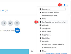 Accéder à la configuration du carnet de notes.