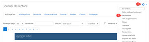 Pour cela, l'enseignant doit modifier les permissions de l'acitivté. Quand le journal de lecture est affichée, on clique sur la roue dentelée à droite :