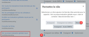 Pour que les élèves puissent voir les évaluations reçues, il reste un dernier réglage à effectuer dans les permissions :