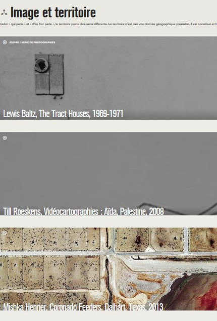 Le parcours thématique « Images et territoires » donne accès à quatre œuvres principales qui sont ensuite contextualisées par d’autres documents (textes, images et vidéos)