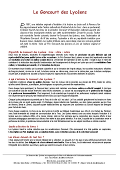 Les inscriptions au 26e Prix Goncourt des lycéens sont ouvertes jusqu'au 5 avril 2013 auprès des services du rectorat. Voir les détails dans le