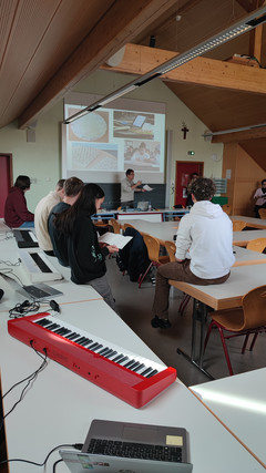 Dans le cadre du projet labo MathéMusique : deux journées durant lesquelles se sont succédé ateliers pour les élèves, et conférences pour les élèves et les enseignants, orchestrés par M Moreno Andreatta, directeur de recherche au CNRS de Strasbourg, en partenariat avec le labo maths SudAlsace (Lycée Don Bosco de Landser, Collège des Missions de Blotzheim et École Jules Ferry de Blotzheim).