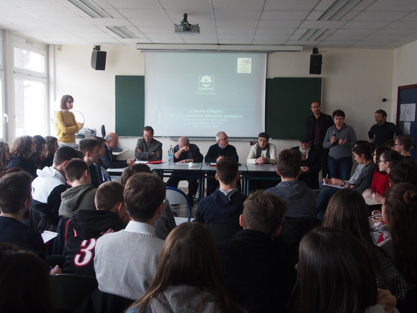 Après avoir travaillé , notamment autour d'une exposition proposée par l'ONACVG , durant plusieurs heures sur l'histoire de la guerre d'Algérie, les élèves se sont fortement mobilisés pour préparer la rencontre avec les témoins et s'interroger sur les mémoires multiples et complexes de cette période. Les témoignages d'un ancien appelé , d'un ancien Harki et d'un pied-noir ont été suivi par un temps d'échanges avec les élèves .