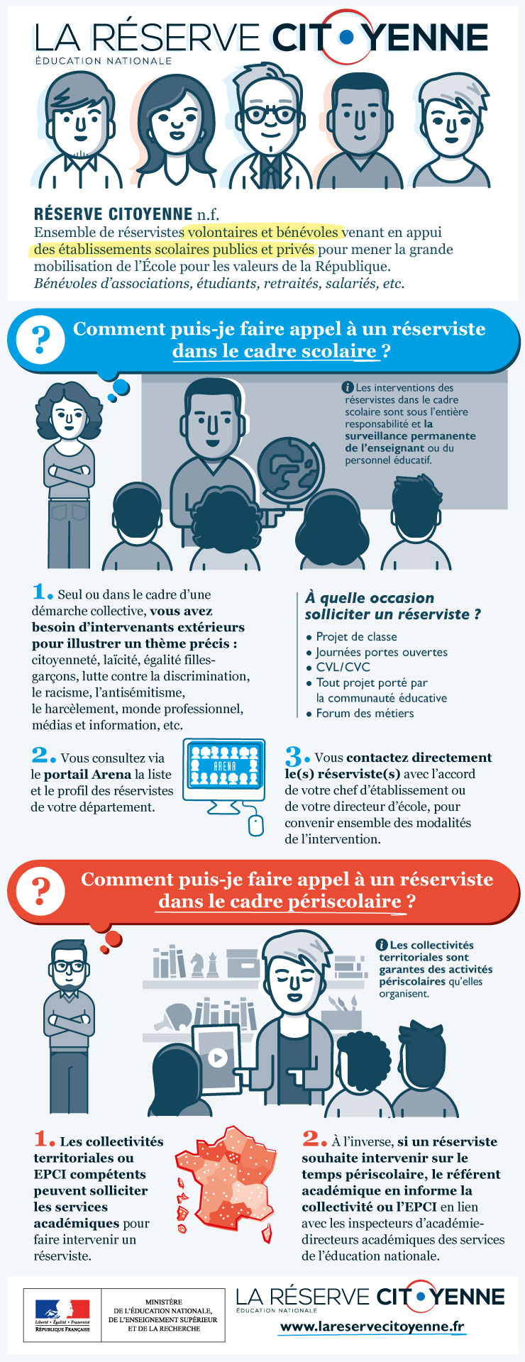 Dans le cadre scolaire ou périscolaire, les enseignants et les équipes éducatives peuvent ainsi bénéficier des apports de réservistes, afin d’illustrer leurs cours ou leurs actions dans les domaines suivants :